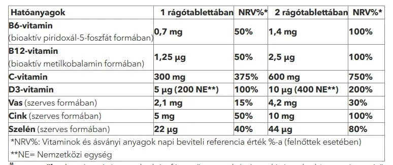 A rágótabletta jelentős mennyiségű D-vitamin bevitelt biztosít, mely hozzájárul a gyermekek immunrendszerének megfelelő működéséhez*, csontjaik megfelelő növekedéséhez és fejlődéséhez.