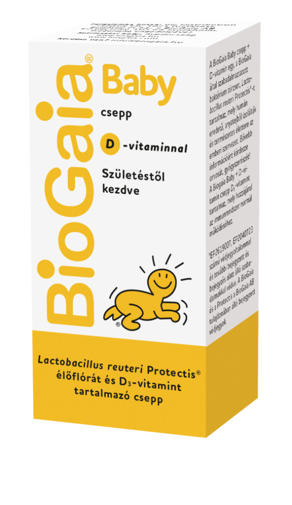 A BioGaia Protectis Baby + D-vitamin csepp egy, a BioGaia által szabadalmaztatott baktériumtörzset, L. reuteri Protectis®-t* tartalmaz, mely humán eredetű, anyatejből izolálták, és természetes élettere az emberi szervezet. Bővebb információért kérdezd orvosodat, gyógyszerészedet! A BioGaia Protectis Baby + D-vitamin csepp emellett D3-vitamint tartalmaz, mely hozzájárul az immunrendszer normál működéséhez.