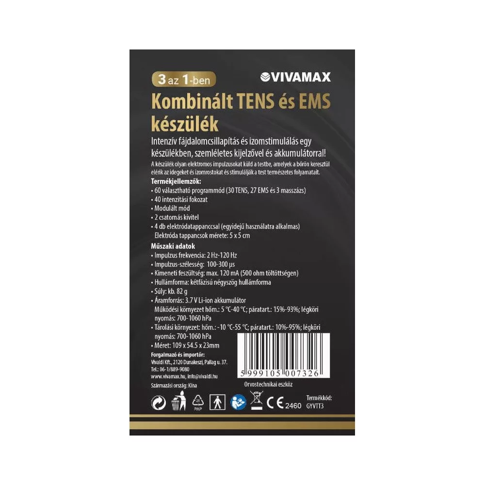 - Készülék mérete: 109 x 54,5 x 23 mm